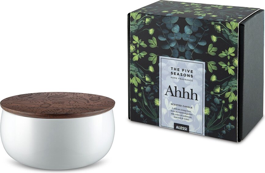 - Sveča Ahh je utelešenje pomladi – izžareva nežno, svežo, zeliščno dišavo, ki vključuje note kardamoma, hijacinte in vetiverja.