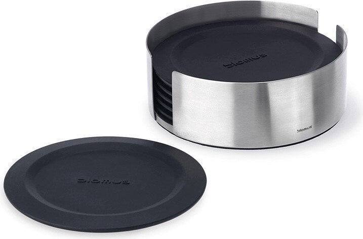 Komplet šestih okroglih steklenih podstavkov iz silikona in držala za njihovo shranjevanje. Lareto znamke Blomus je praktičen dodatek za domači bar ali sodobno kuhinjo in jedilnico. Zaradi preproste narave dodatka se bo popolnoma podal v moderne interjerje z različnimi barvami.