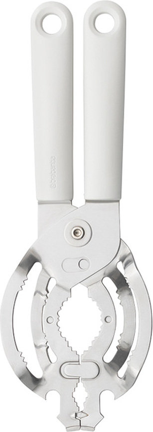 Tukaj predstavljen univerzalni odpirač, izdelan iz nerjavečega jekla in trpežne plastike, je eden izmed elementov te 'okusne' serije. Kot vsi kuhinjski pripomočki iz te linije, ima tudi to orodje luknjo za obešanje in je idealno za odpiranje navojnih pokrovčkov s premerom od 1 do 10 cm, s čimer bo odpiranje steklenic in kozarcev odslej še posebej enostavno in brez napora.