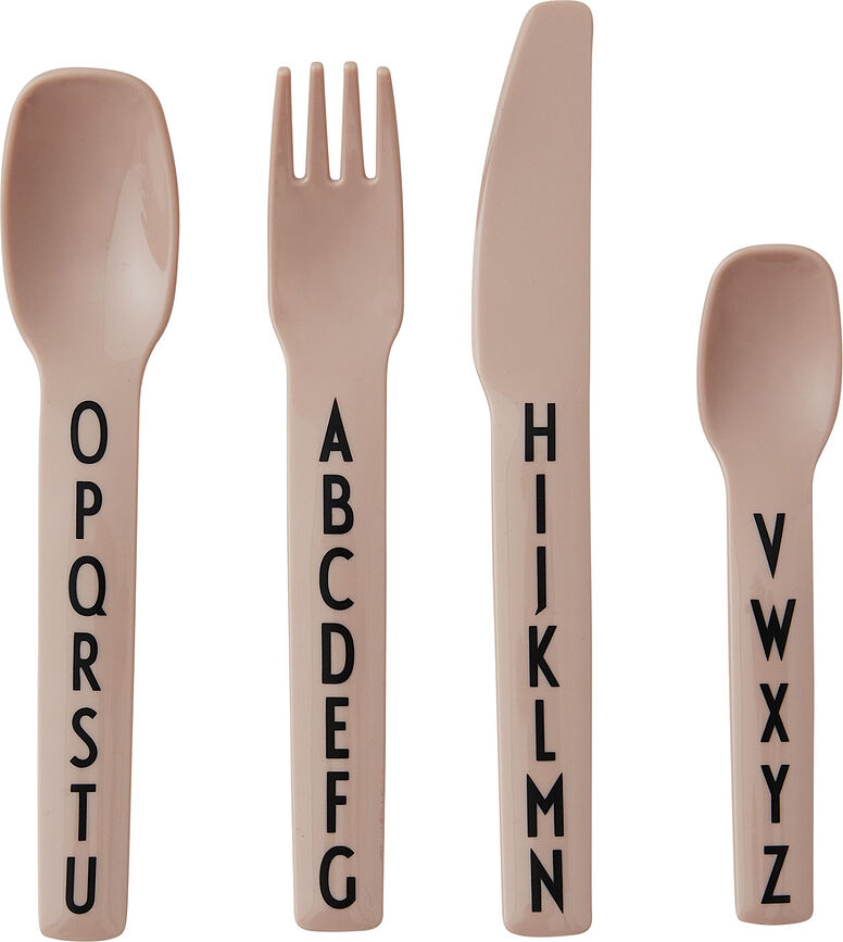 Predstavljeni jedilni pribor iz linije AJ Kids je, tako kot vsa posoda in dodatki iz te serije, izdelan iz melamina in okrašen z črkami abecede na ročajih. Jedilni pribor – nož, vilice, žlica in čajna žlička – je zato popoln za vsakodnevne obroke, pa tudi kot pripomoček za učenje črk in abecede oblikovanja! Dolžina jedilnega pribora se giblje od 12,2 cm do 17 cm.