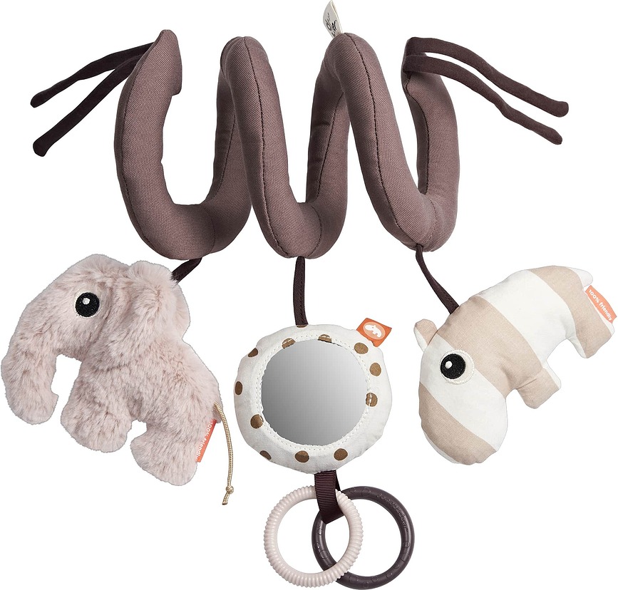 - Komplet je sestavljen iz mehke, prožne spirale in treh obeskov-igračk.