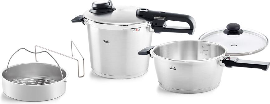 V kompletu Vitavit® Premium proizvajalca Fissler boste našli vse elemente tako za hitro kuhanje pod pritiskom kot za klasično dušenje ali praženje hrane.