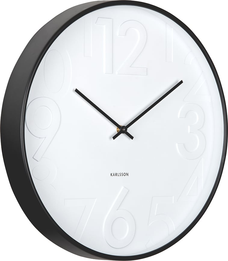 - Tridimenzionalna številčnica z nežno reliefnimi številkami ustvarja zanimivo igro svetlobe in sence, kar daje uri edinstven, sodoben značaj.