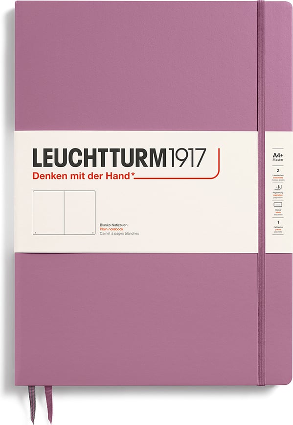 Razpoložljive različice:- Leuchtturm 1917 Notes, A4+, 123 strani, trda vezava, brez črt, umazano roza, 100 g/m², Leuchtturm 1917 Zvezek, A4+, 123 strani, gozdno zelena, 100 g/m², Leuchtturm 1917 Zvezek, gładki, trda vezava, A4+, 123 strani, temno oranžen, 100 g/m², Leuchtturm 1917 Zvezek, A4+, 123 strani, gladke, žajbljevo zelene, 100 g/m², Leuchtturm 1917 Zvezek, trda vezava, A4+, 123 strani, oranžen, 100 g/m², Leuchtturm 1917 Zvezek s trdimi platnicami, A4+, 123 strani, črn, 100 g/m², Leuchtturm 1917 Zvezek, A4+, 123 strani, trda vezava, gładki, 100 g/m², temno moder