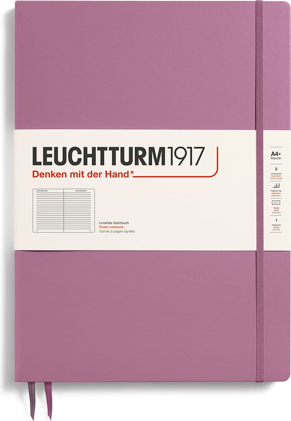 Razpoložljive različice:- Leuchtturm 1917 Zvezek v črto, trda vezava, A4+, 123 strani, umazano roza, 100 g/m², Leuchtturm 1917 Zvezek v črto, trda vezava, A4+, 123 strani, gozdno zelen, 100 g/m², Leuchtturm 1917 Notes v črto, trda vezava, A4+, 123 strani, žajbljevo zelena, 100 g/m², Leuchtturm 1917 Zvezek v črto, trda vezava, A4+, 123 strani, oranžen, 100 g/m², Leuchtturm 1917 Zvezek v črto, trda vezava, A4+, 123 strani, črn, 100 g/m², Leuchtturm 1917 Zvezek v črto, trda vezava, A4+, 123 strani, mornarsko moder, 100 g/m²