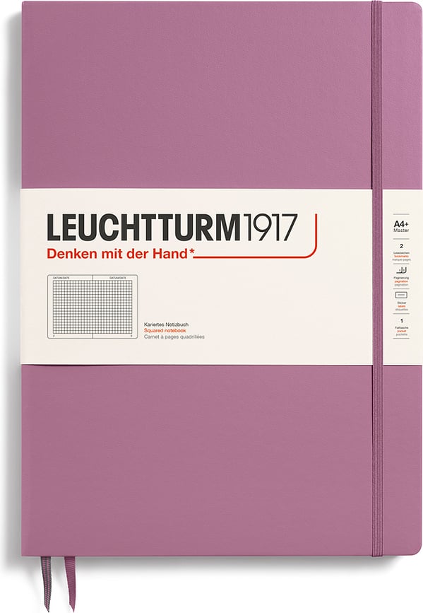 Razpoložljive različice:- Leuchtturm 1917 Zvezek v trdi vezavi, A4+, 123 strani, karirast, 100 g/m², umazano roza, Leuchtturm 1917 Notes v trdi vezavi, A4+, 123 strani, karirast, gozdno zelen, 100 g/m², Leuchtturm 1917 Zvezek v trdi vezavi, A4+, 123 strani, temno oranžen, 100 g/m², karirast, Leuchtturm 1917 Zvezek v trdi vezavi, karirast, A4+, 123 strani, žajbljevo zelen, 100 g/m², Leuchtturm 1917 Zvezek v trdi vezavi, A4+, 123 strani, oranžen, 100 g/m², karirast, Leuchtturm 1917 Zvezek v trdi vezavi, A4+, 123 strani, črn, 100 g/m², karirast, Leuchtturm 1917 Notes v trdi vezavi, karirast, A4+, 123 strani, mornarsko moder, 100 g/m²