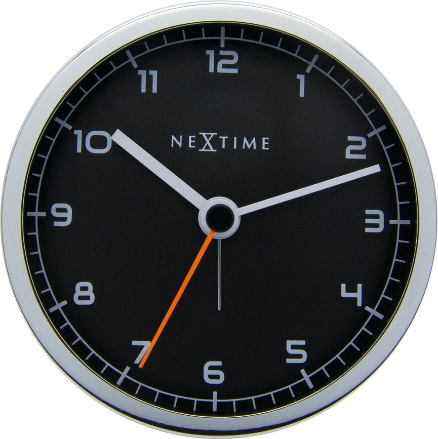 Kolekcija ur Company je serija časomerov s klasičnim, brezčasnim dizajnom. Profesionalni videz se združuje s sodobnim stilom, zahvaljujoč asketski številčnici, brez kakršnih koli okraskov, posrebreni kovinski okrogli ohišju in arabskim številkam, ki označujejo ure. Oranžna sekundna kazalka je privlačen oblikovalski element. Poleg funkcije alarma je ta budilka iz kolekcije opremljena s tihim mehanizmom, ki vas ne bo zbudil s svojim monotonim tiktakanjem.