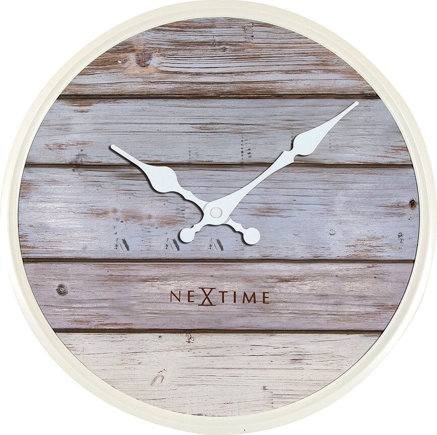 Preprosta lesena deska, ki pa vseeno naredi vtis! Predstavljena ura Plank je klasična, okrogla ura, izdelana iz naravnega lesa z jasno vidno strukturo. Logotip blagovne znamke je vrezan v les, bele baročno oblikovane kazalce pa so zanimiv dodatek k preprostemu, strogemu dizajnu. Belo, precej debelo ohišje popolnoma objame številčnico, ki je na voljo v dveh različicah – mehko pobeljeni in rahlo sivkasti barvi lesa. Ura je opremljena z neslišnim mehanizmom.