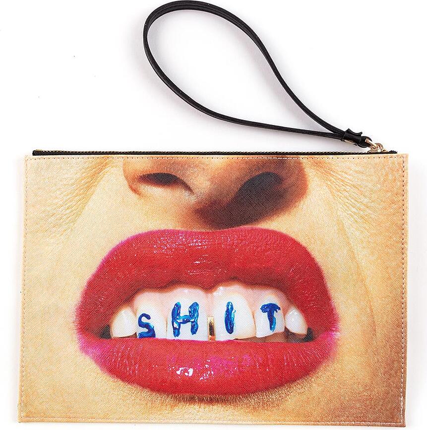Ikonična serija Seletti Wears Toiletpaper je zdaj na voljo tudi na torbicah! Elegantna pravokotna torbica je opremljena z zadrgo z zanko za roko in podlogo.