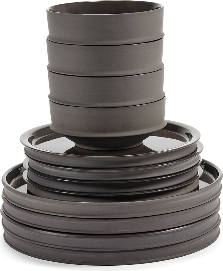 - Popoln set za štiri osebe, sestavljen iz 12 elementov: velikih krožnikov, zajtrkovalnih krožnikov in skledic, popolnih za serviranje juh, solat ali sladic.