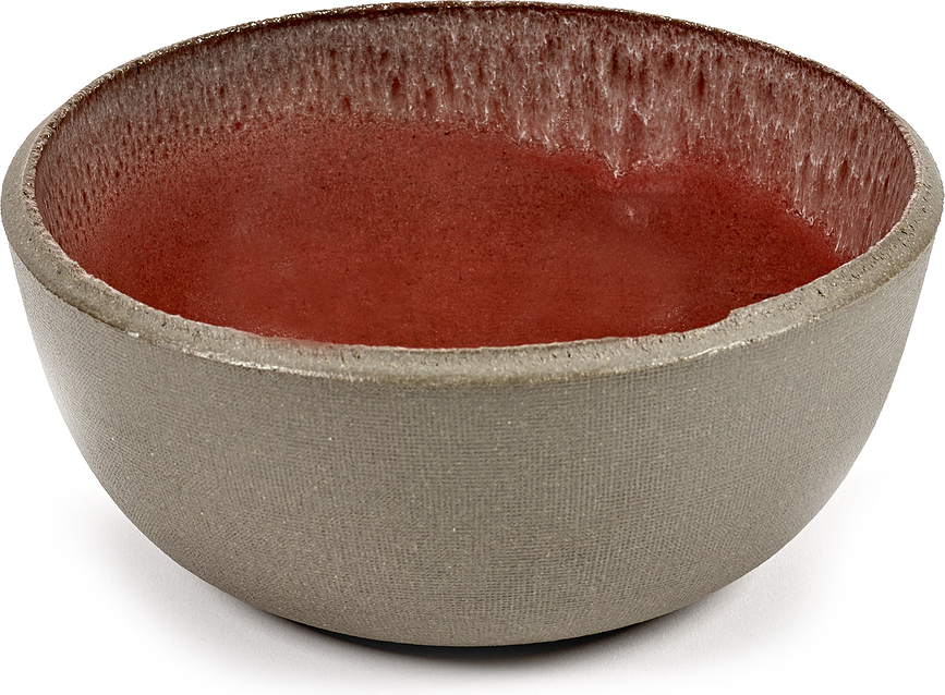 - Fascinanten kontrast med mat, grobo zunanjo teksturo in gladko, glazirano notranjostjo, ki spodbuja čut za dotik.