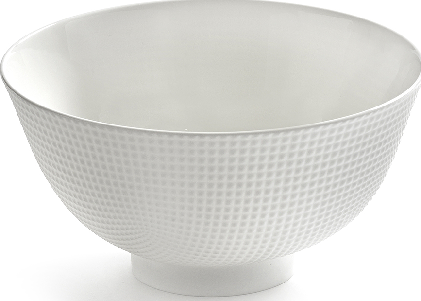 - Izvirna, geometrijska tekstura na zunanji površini posode ustvarja fascinantno igro svetlobe in sence, kar dodaja sodoben značaj namizni posodi.