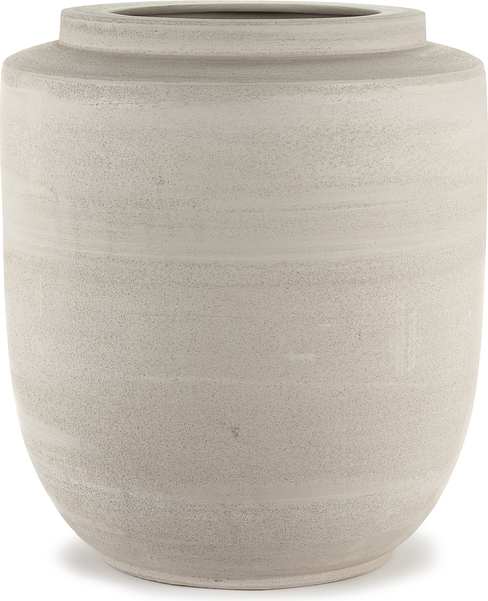 - Surova, mat tekstura in naravna barvna paleta naredijo lonček diskretno, a prefinjeno ozadje za vsako rastlino.