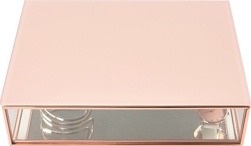 Želite svoje najlepše dragulje razstaviti na eleganten način? Steklena škatla Stackers je popoln dodatek za ta namen! Predstavljena velika škatla za nakit je izdelana iz stekla različnih barv, od prozornega do zrcalnega in obarvanega v enega izmed pastelnih odtenkov. Steklene plošče so med seboj povezane s kovinskim okvirjem v bakreno-rožnati barvi, ki se zelo lepo ujema s steklom. Škatla bo videti odlično tako na komodi v spalnici kot na polici v kopalnici, kjer bo prikazovala neprecenljivo vsebino.