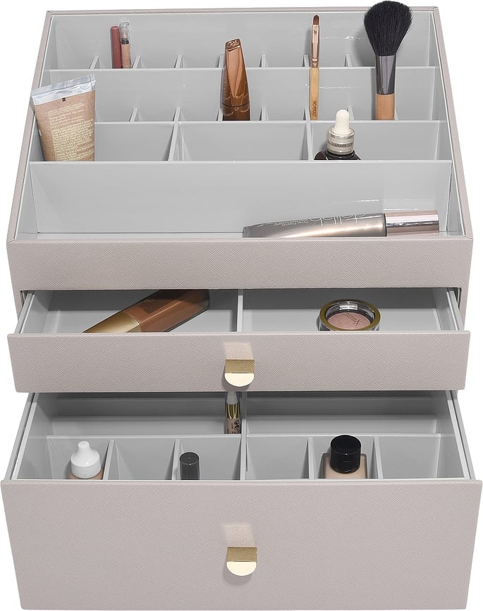 Razpoložljive različice:- Stackers Supersize Organizator za kozmetiko z 2 predaloma, taupe, Stackers supersize Organizator za kozmetiko z 2 predaloma, svetlo roza, Stackers Pebble Organizator za kozmetiko, supersize, z 2 predali, siv
