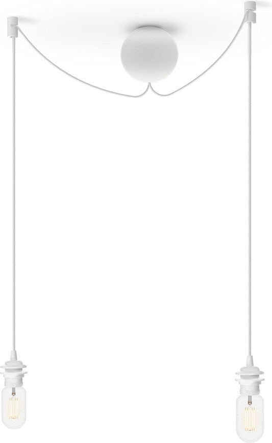 Viseča svetilka Cannoball Cluster 2 je zanimiva ponudba blagovne znamke Umage. Z njo lahko obesite dve svetilki z ene same električne točke, kar bo še posebej dobro delovalo v dnevni sobi, hodniku ali jedilnici. Viseča svetilka je sestavljena iz elegantnega silikonskega ohišja v obliki krogle s premerom 12 cm, iz katerega izhajata dva 2,5 m dolga kabla z vpenjalnimi elementi in standardnim navojem E27. Viseča svetilka je primerna za večino modelov svetilk Umage in drugih senčnikov s standardnimi navoji.